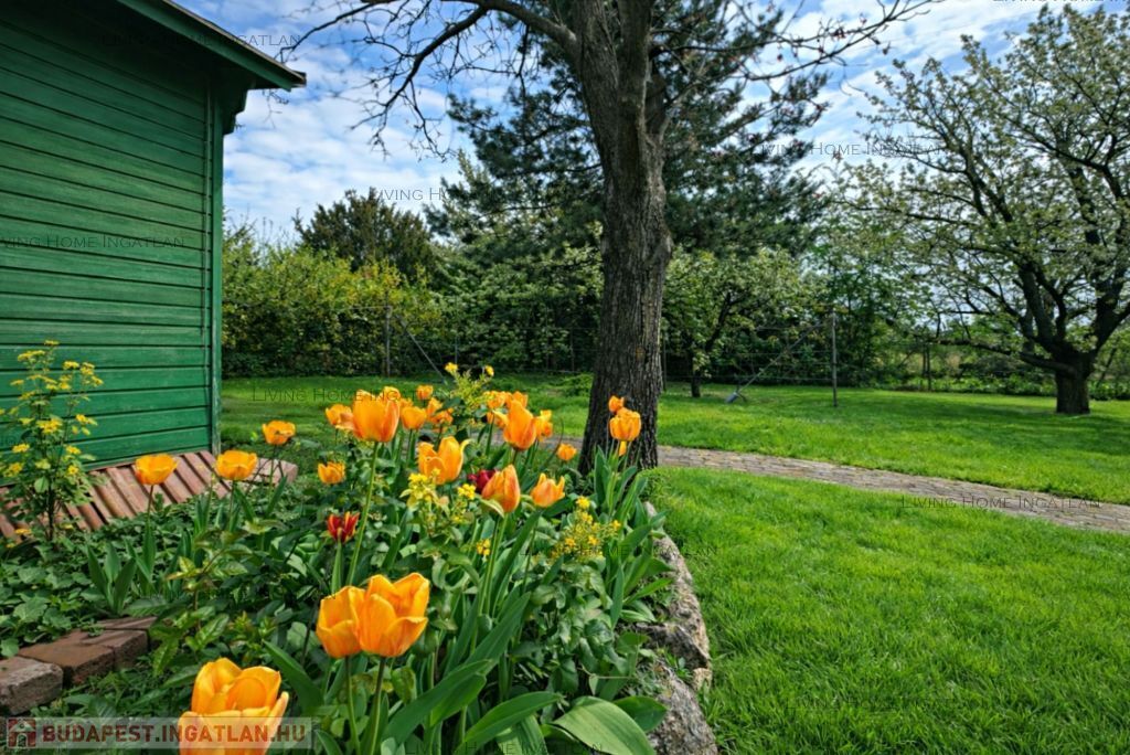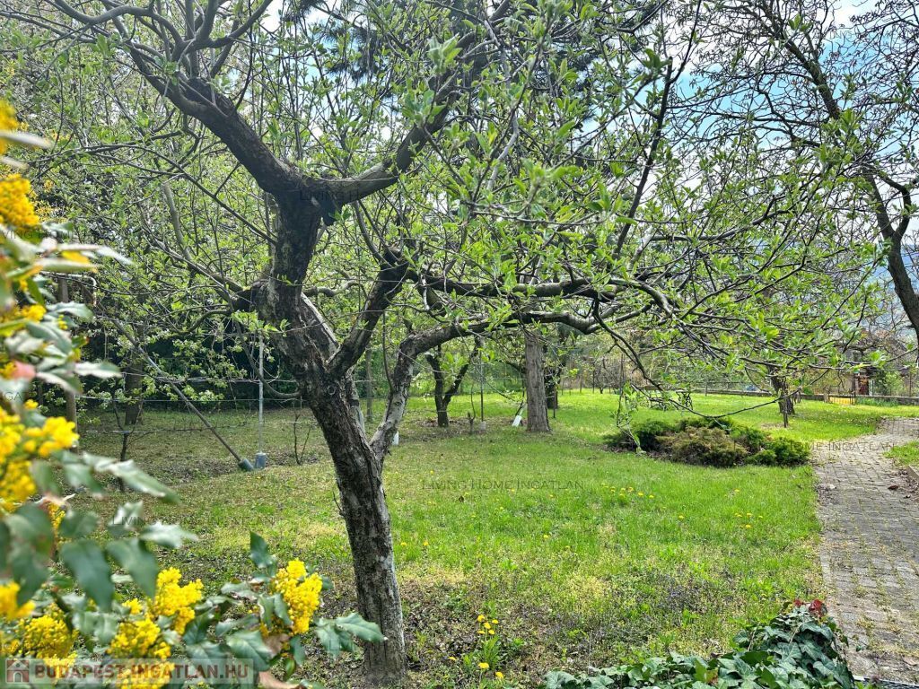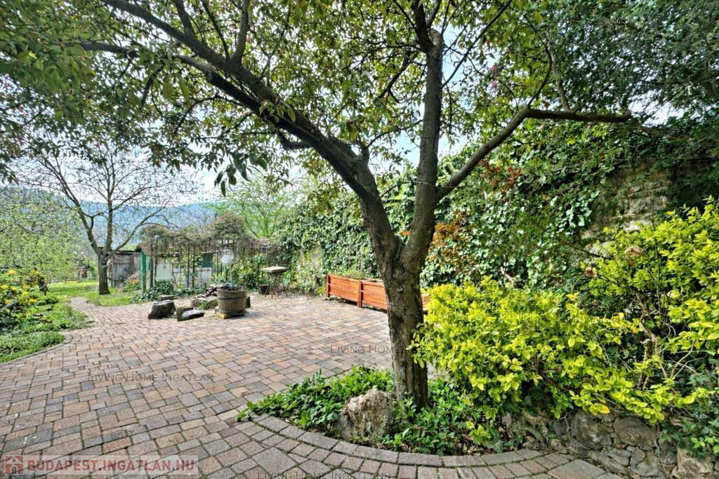 Eladó a III. kerület egyik legkedveltebb, zöldövezeti részén egy kiváló adottságokkal rendelkező, panorámás családi ház nagy telken. Az ingatlan zsákutcában helyezkedik el, új építésű ingatlanok környezetében. Csendes, nyugodt környezet, könnyen megközelíthető lokáció. A délnyugati tájolásnak és a nagy ablakoknak köszönhetően a terek, a szobák világosak. Az ingatlan egyik különlegessége a parkosított kert gyümölcsfákkal, konyhakerttel, dísznövényekkel, virágokkal. Pihenésre, feltöltődésre, kertészkedésre kiválóan alkalmas. A telek hátsó részében egy kisház és egy üvegház is található.
