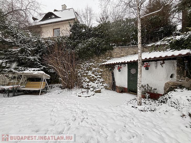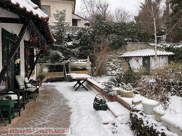 A kertben található egy 12 négyzetméteres téli kert és halastó is!