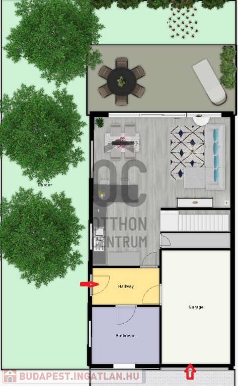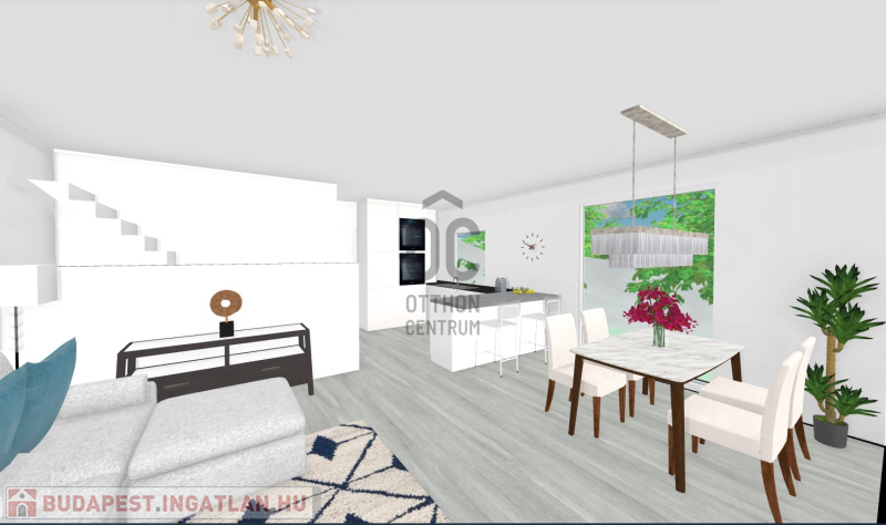 - A lakás belső két szintes: földszinten található egy tágas amerikai konyhás nappali, fürdő és háztartási helyiség valamint a garázs. Az emeleten 3 kényelmes méretű hálószoba található és a fürdőszoba.