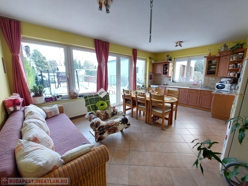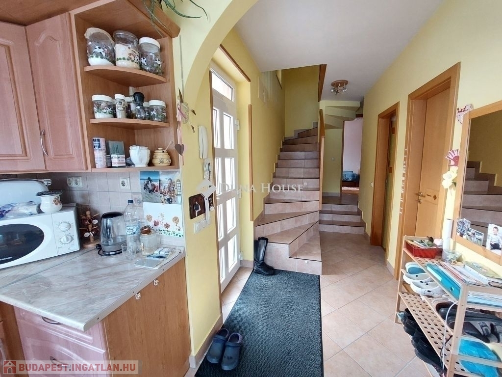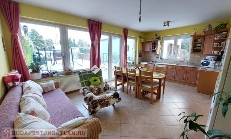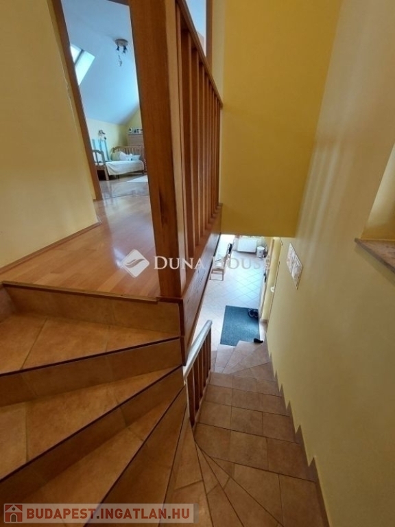 A 2004-ben épült, DUPLAKOMFORTOS, KÉTSZINTES, összesen 110 nm-es házrész földszintjén TÁGAS, AMERIKAI KONYHÁS nappali kapcsolódik egy 21 nm-es NYITOTT teraszhoz. Ezen a szinten található még egy VILÁGOS, DÉLI FEKVÉSŰ, 14 nm-es vendégszoba, egy rejtettzuhanyzós fürdőszoba és egy PRAKTIKUS kamra. Az emeleten két TÁGAS, VILÁGOS hálószoba és egy MEGNYERŐEN SZÉP fürdőszoba kapott helyet.