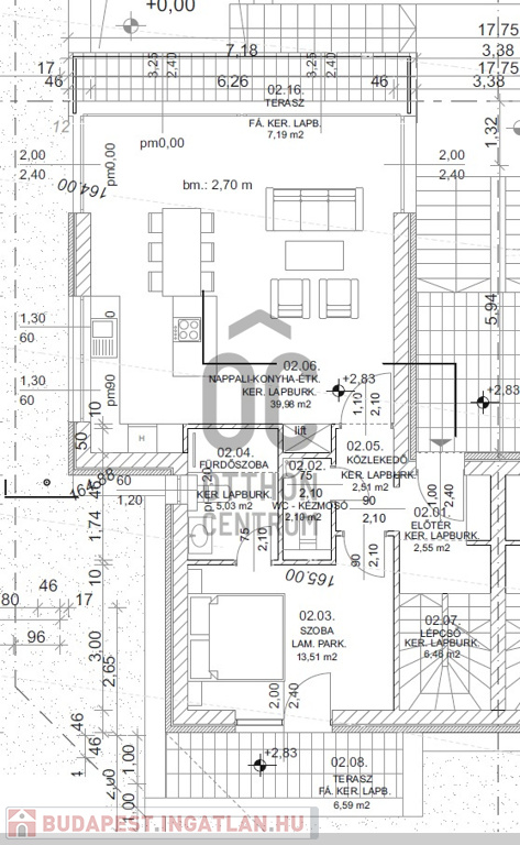 Bruttó alapterülete teraszokkal együtt 206 nm. A lakás nettó alapterülete 146 nm, összesen 3 szinten.