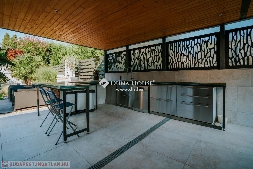 A mediterrán stílusú kertben egy 22 m²-es, fűthető medence várja, amely az év minden szakaszában használható. A 20 m²-es nyári konyha Európa legnagyobb epoxigyanta pultjával és modern felszereltségével tökéletes helyszínt kínál családi és baráti összejövetelekhez. A kert automata öntözőrendszerrel és csöpögtető szisztémával gondozott, így Önnek csak a pihenésre kell koncentrálnia.