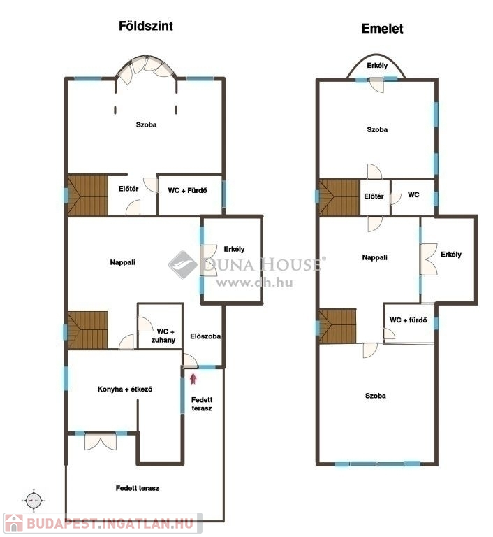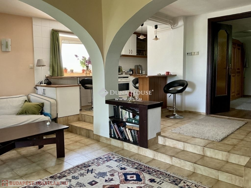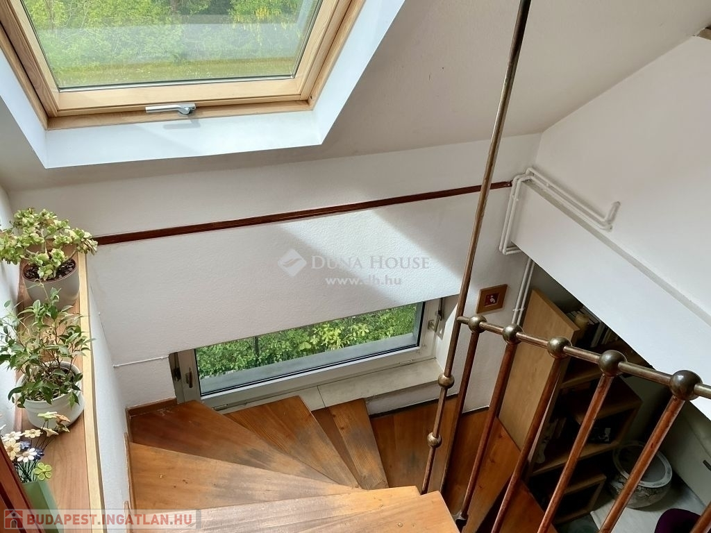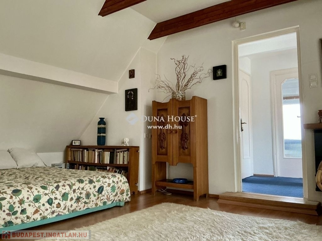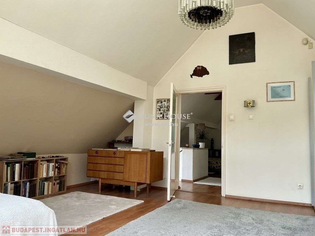 A lépcsőházon keresztül feljutva az emeletre szemben egy kádas fürdőszoba, balra, egy gyönyörű, boltíves, panorámás szobába érkezünk. A szobával szemben erkélykapcsolatos, tágas, világos nappaliba, a nappaliból egy szintén köríves kialakítású, panorámás, tágas, világos hálószobába lépünk.