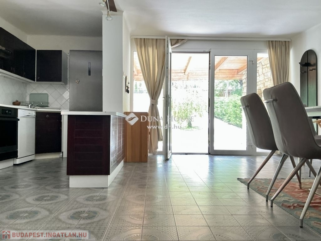 A földszinten a kertből a nagy méretű teraszon keresztül belépünk a fényárban úszó étkező-konyhába. A közlekedőből balra ismét egy zuhanyzós WC, balra a lépcsőház található. A közlekedőből tovább haladva, egy világos, szép nappaliba lépünk, ahonnan az előszoba és a bejárti ajtó található.
