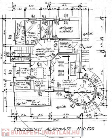 * kertszint: alsó bejárat, dolgozószoba, hobbyszoba, kis konyha, fürdőszoba, kazánház, tároló, WC,