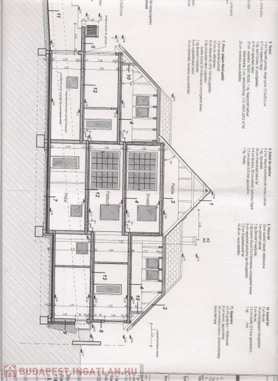 * Földszint 157,56 m2: Előszoba, közlekedő, lépcsőház, nappali, konyha, 3 hálószoba, 2 gardrob szoba, 2 fürdőszoba.; belmagasság: 2.63 m
