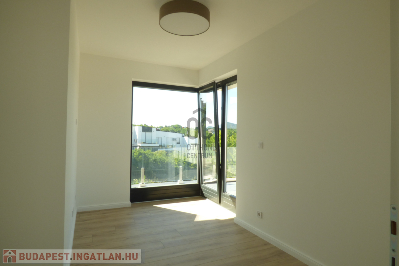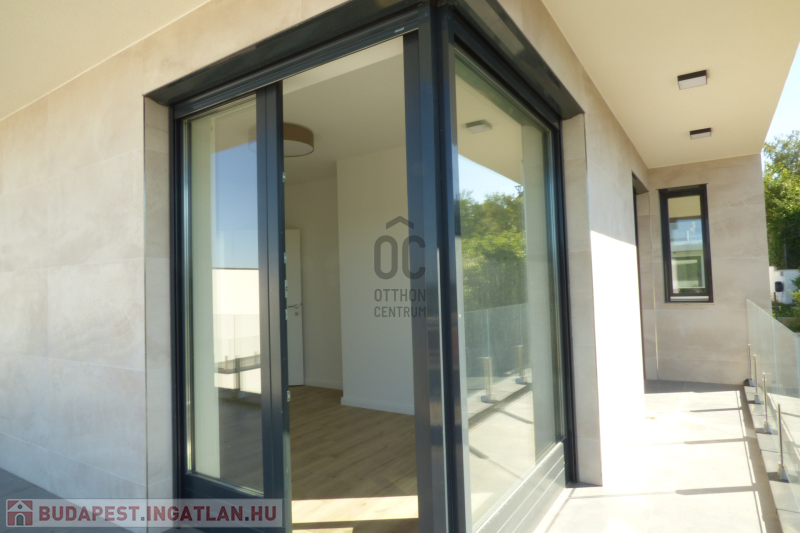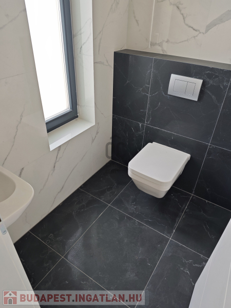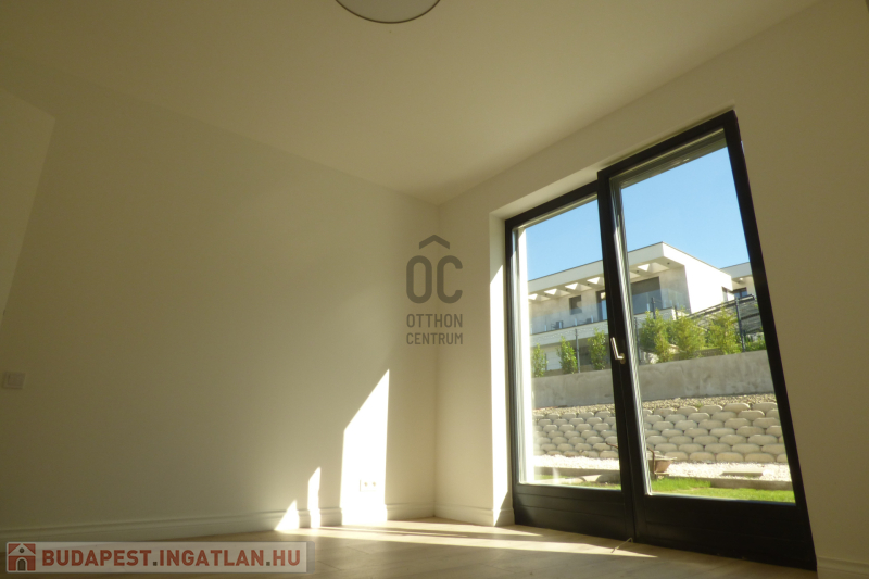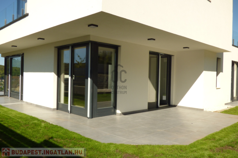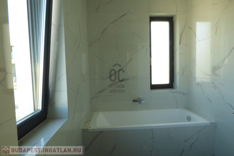 A házhoz tartozik 55 nm burkolt terasz, valamint 27 nm zöldtetős terasz.