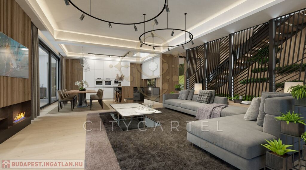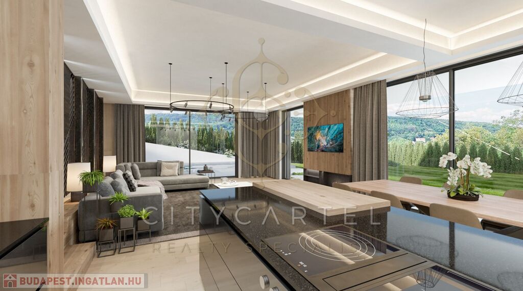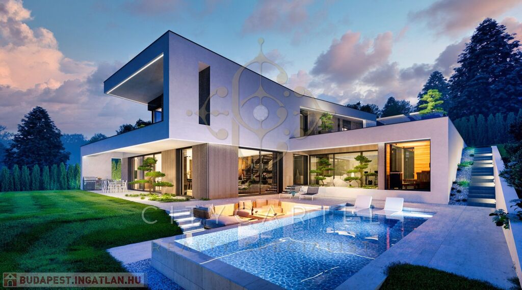 A III. kerületben, az Aranyhegy egyik legszebb részén kínáljuk megvételre ezt a kivételes adottságokkal rendelkező, modern, egyedi tervezésű villaépületet, amely örökpanorámás kilátással tárul elénk: a város látképe és Péterhegy fenyvesei egyaránt lenyűgöző hátteret biztosítanak az otthon mindennapjaihoz.