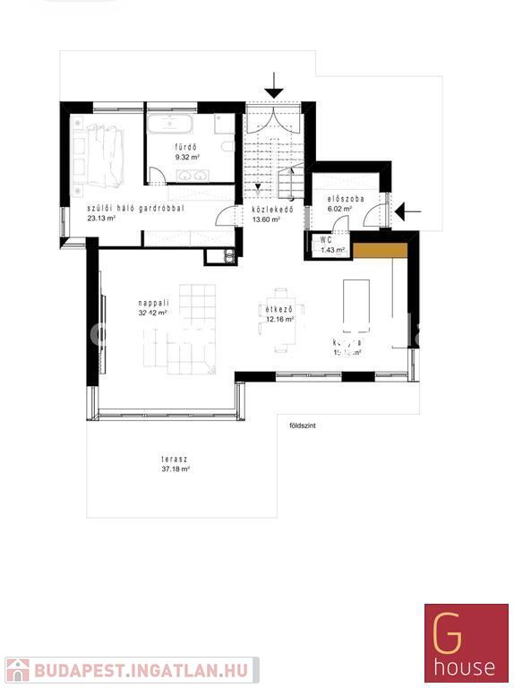 A földszinten található a szülői hálószoba saját, kádas fürdőszobával, amely privát lakrészként biztosít kényelmet és nyugalmat.