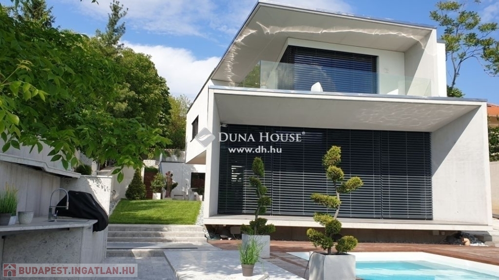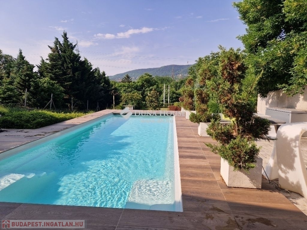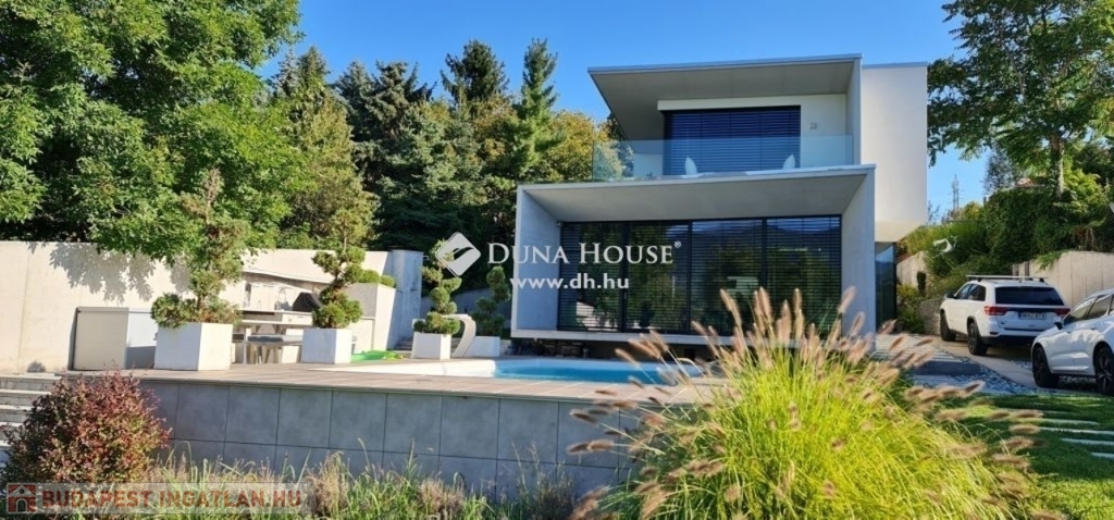 Kedves Érdeklődő!Figyelmébe ajánlom Aranyhegyen, hatalmas telken ezt a modern, nappali + 4 hálószobás, luxus kivitelű családi házat ahonnan a felkelő és a lenyugvó napot is a teraszáról csodálhatja.Méretek:Telek: 1558 m2Földszint: 198 m2Emelet: 94 m2Földszinti terasz: 15 m2Emeleti terasz: 22 m2Garázs: 51 m2Medence: 20 m2A földszinti 40 m2-es napsütötte, déli tájolású nappaliból tudunk kilépni a medencés teraszra. Az öntözőrendszerrel felszerelt, gyönyörűen parkosított kert igazi megnyugvást ad egy sűrű nap után. A házhoz tartozik kerti konyha, szauna, jacuzzi és saját fitness terem is.A földszinten a nappali, konyha, étkezőn túl dolgozósarok, fürdőszobás vendégháló, az emeleten további három hálószoba került kialakításra. Összesen három fürdőszoba szolgálja a családot. A master bedroom-ból egy hatalmas jacuzzis terasz és gyönyörű panoráma nyílik a környező hegyekre. Ehhez a hálószobához saját fürdőszoba és pezsgőfürdő is tartozik. A ház garázsa dupla állásos ezen kívül tárolóhelyiségek is rendelkezésre állnak.A ház 2016-ban épült a legmodernebb anyagokkal. A fűtés-hűtés geotermikus technológiával került megoldásra. A rezsi ennek köszönhetően mérsékelt. Az ingatlanból csodás panoráma nyílik a környező hegyekre.Közelben óvoda, magyar és nemzetközi (British School) iskolák, uszoda, jégcsarnok, éttermek, cukrászdák, lovarda, Csillaghegyi strandfürdő, golf klub, szórakozási sportolási lehetőségek. Tömegközlekedés szempontjából is kiváló hely, hiszen néhány percre található a GoBuda bevásárlóközpont, Stop Shop, Tesco, Lidl, töltőállomás, egészségügyi központ, pénzintézetek.Legyen tulajdonosa egy újszerű, modern otthonnak az építkezés minden gondja nélkül! Hívjon bizalommal, ha ajánlatom felkeltette érdeklődését!