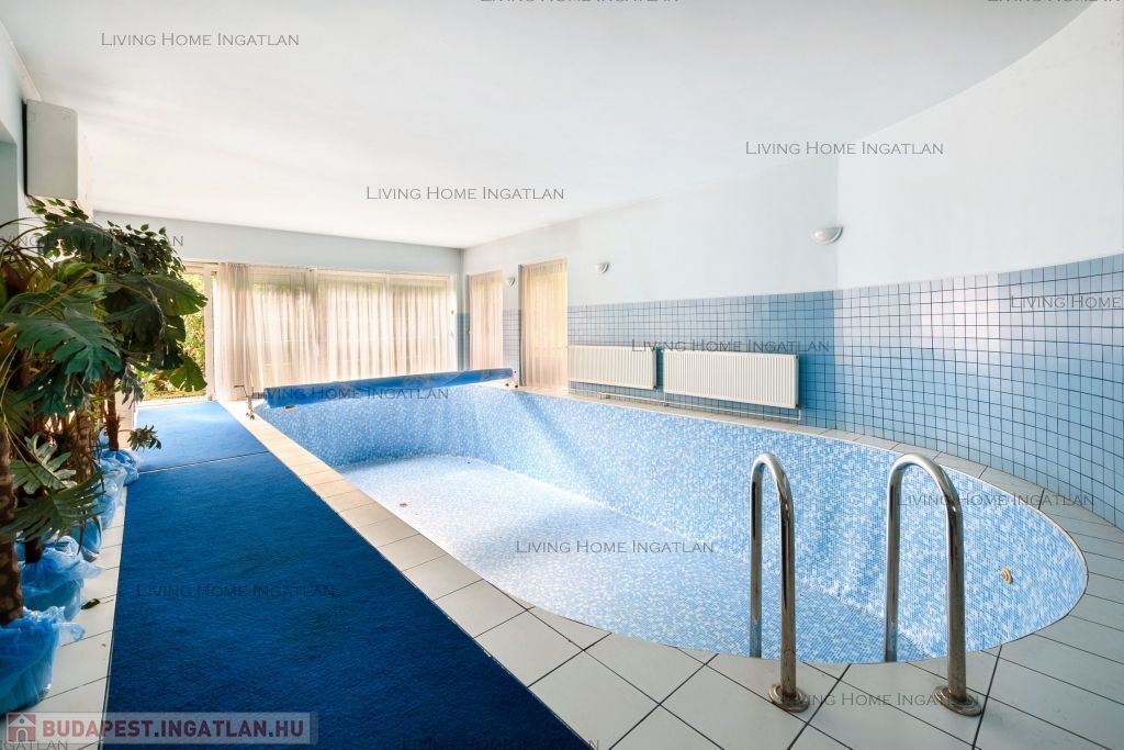 A földszinten található a 40 nm-es (10m x 4m, 1,60 mély) belső medence, amely a nappaliból megközelíthető.