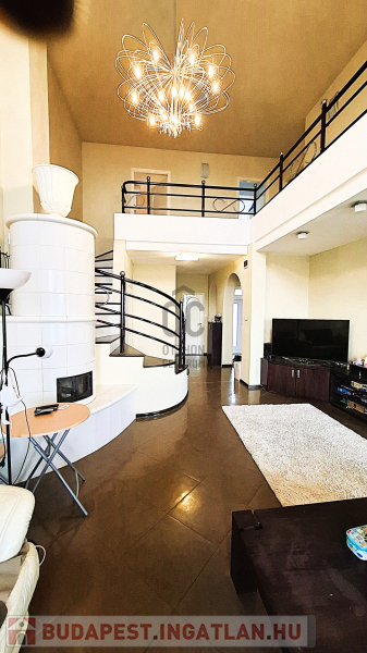 Fent: Két hatalmas, felújított, modern lakás, különleges, átriumokkal, amik nagyvonalú tereket biztosítanak. Mind a két lakás a konyha-étkező valamint nappali mellett három hálószobával rendelkezik a felső szinten. A nagyobbik lakásnak alul még vendégszobája is van.