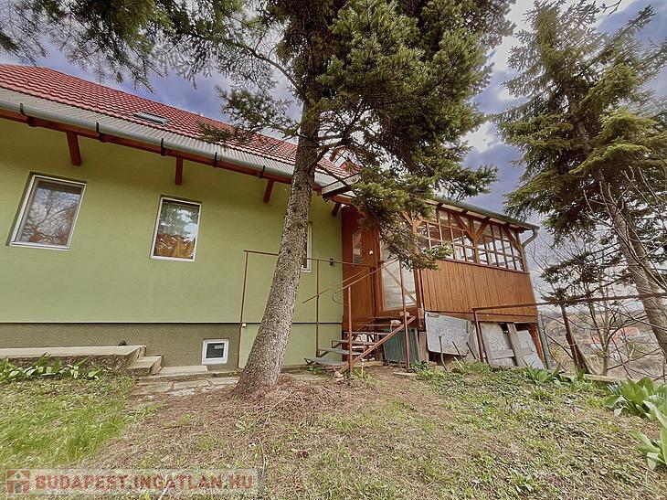Békásmegyer-Ófaluban ELADÓ egy panorámás 84 négyzetméteres ÖNÁLLÓ CSALÁDI HÁZ 37 négyzetméteres fedett terasszal és kocsibeállóval 1590 négyzetméteres telken.