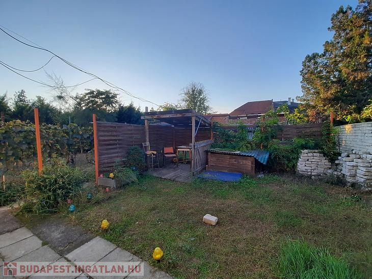 A telken belül található egy villaház, melynek az egyik fele kerül értékesítésre kb. 65 nm-es kertkapcsolattal, illetve az udvar hátsó részében helyezkedik el egy kis alapterületű stúdiólakás jellegű lakrész, mely előtt szintén egy kb. 65 nm-es lekerített kert található, ez szintén benne van az árban.