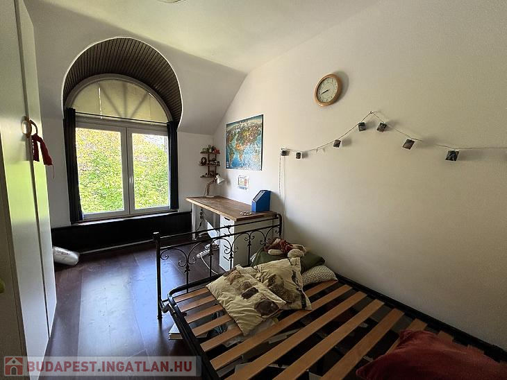 IV. kerületben, Újpest-kertváros részen, 347nm-es telken, bruttó 220nm-es, nettó: 188nm-es, előkertes, három fekvésű (É/D/Ny), duplakomfortos, 6+2 félszobás, 3nm-es erkéllyel és beépíthető tetőtérrel rendelkező, könnyen kétgenerációssá alakítható ikerházfél eladó, 35nm-es pincével, saját 200nm-es medencés kerttel, autóbeállóval, garázzsal.