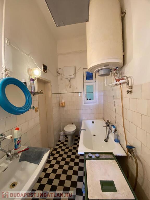 A fürdőszoba ablakos, kádas, WC-vel felszerelt.