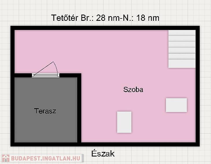 A tetőtérből egy kb. 5 nm-es teraszkapcsolat nyílik.