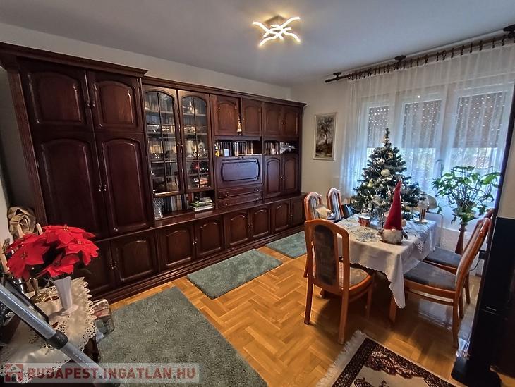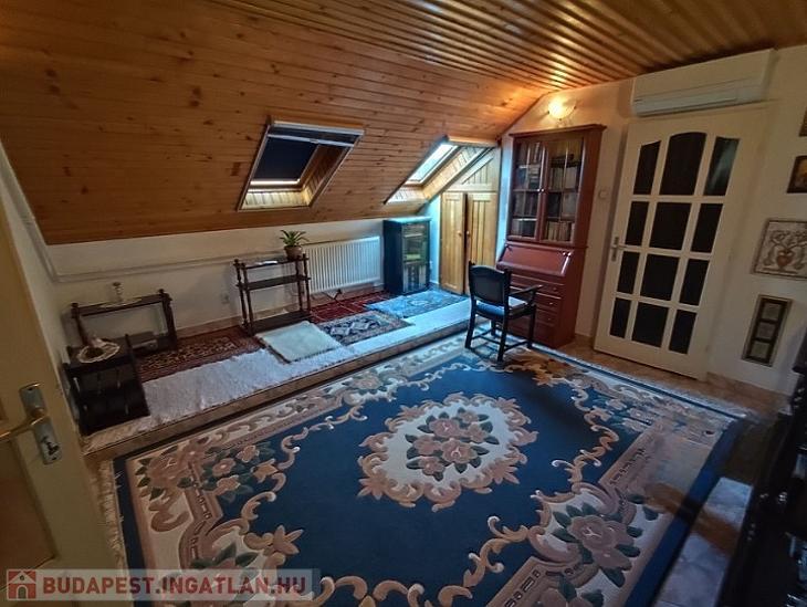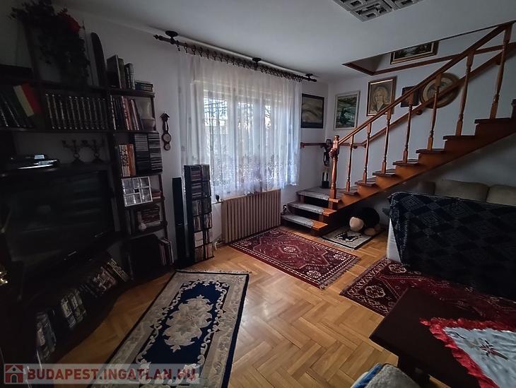 Az 1. emeleten található belső kétszintes, teraszkapcsolatos ingatlan br.: 130 nm, n.: 110 nm, 3 szoba, beköltözhető állapotú, duplakomfortos.  Az 1. emeleten fa keretes ablakok, a tetőtérben velux ablakok található. A nappali fa parkettával, a szobák padlószőnyeggel, a többi helyiség járólappal burkolt. A fűtésről kombi cirkókazán gondoskodik, a tetőtérben már újabb lapradiátorok szereltek fel. A nagyobb komfortérzet kialakítása érdekében, a tetőtérben egy hűtő-fűtő inverteres légkondicionáló is beépítésre került.