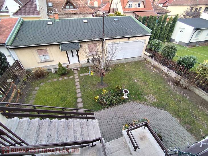 Az udvaron belül helyezkedik el egy kb. 40 nm-es melléképület és a kert végében egy dupla állásos garázs is helyet kapott.