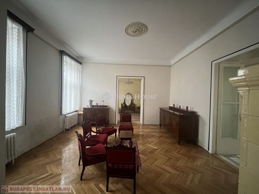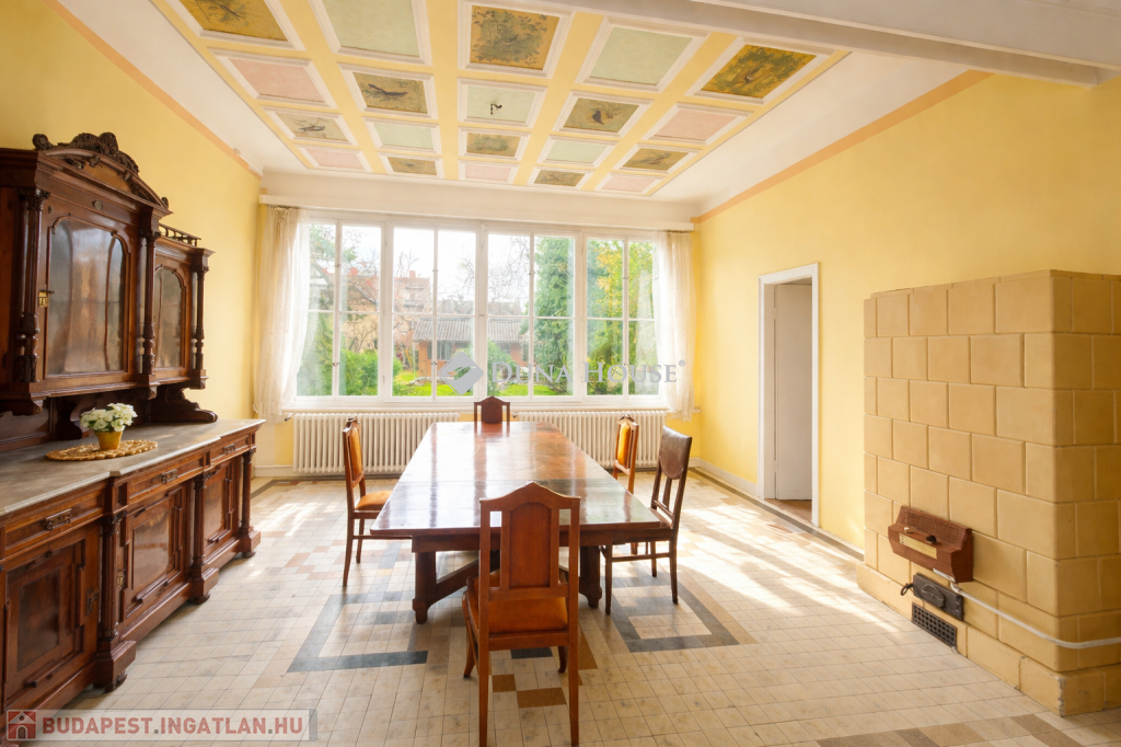 Különleges polgári családi ház eladó a VIII. kerületben 656 m²-es telken!Budapest VIII. kerületében kínálunk megvételre egy igazán egyedi hangulatú, az 1920-as években épült polgári családi házat, amely önálló, 656 m²-es telken helyezkedik el igazi ritkaság a környéken!A 127 m²-es lakótér 3,5 szobával és egy nagy, fényárban úszó nappalival rendelkezik. A hatalmas ablakoknak köszönhetően a ház rendkívül világos, a tágas terek pedig igazi polgári eleganciát sugároznak.Főbb jellemzők:Telek: 656 m²Lakótér: 127 m²3,5 szoba + nagy nappaliÉpítés éve: 1920-as évekFűtés: gáz cirkó + 1 db Héra + 2 db fa tüzelésű kályha64 m²-es pince (3 külön helyiséggel)Beépített teraszTetőtér: kb. 80 m² (további beépítési lehetőség)A nappali hatalmas ablakain keresztül egész nap természetes fény árad be, ami különleges, meleg atmoszférát teremt.A 64 m²-es pince három különálló helyiségből áll, így kiválóan alkalmas tárolásra, műhelynek vagy akár hobbihelyiségnek is.A kb. 80 m²-es tetőtér további lehetőségeket rejt magában igény szerint beépíthető, így az ingatlan tovább bővíthető.A nagy méretű telek kiváló lehetőséget kínál kert kialakítására, pihenőtér létrehozására vagy akár további fejlesztésre is.Ez az ingatlan ideális választás lehet: nagyobb család számára kétgenerációs otthonnak vállalkozás céljára befektetőknek fejlesztési potenciál miattEgy karakteres, különleges ház, amely megfelelő korszerűsítéssel valódi ékkővé válhat. További információért és megtekintésért keressen bizalommal!