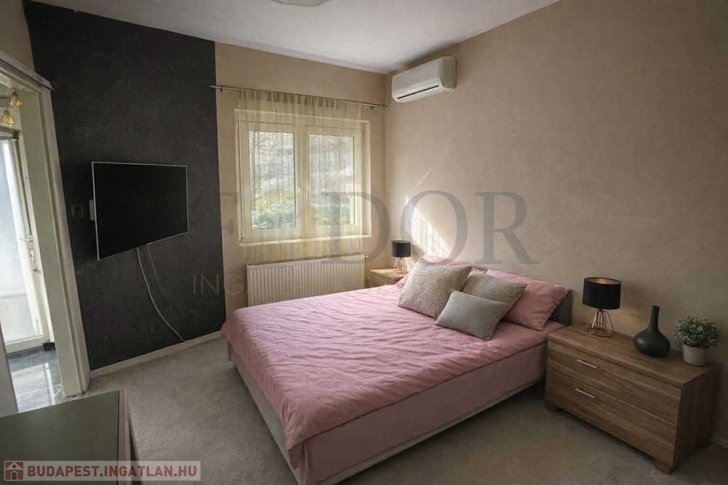 Az ingatlan prémium konyhabútorral van felszerelve, amely beépített sütőt, kerámia főzőlapot és szagelszívót tartalmaz. A nappali, az előszoba és a szobák igényes beépített szekrényekkel büszkélkedhetnek. A kényelem érdekében a lakás prémium kategóriás inverteres hűtő-fűtő klímákkal van felszerelve, 2 db 2,5 kW-os és 3 db 3,5 kW-os egységgel. A nyílászárók műanyagból készültek, kétrétegű, öt légkamrás thermo üvegezéssel, redőnnyel és szúnyoghálóval. A biztonságot szolgáló bejárati ajtó is műanyag, biztonsági zárral ellátva. A szobák padló szönyeggel további helyiségek hideg burkolt. A fűtést és melegvíz-ellátást egy 24 kW-os Sanuier Duval gázkazán biztosítja, amely padló- és radiátoros hőleadást alkalmaz.