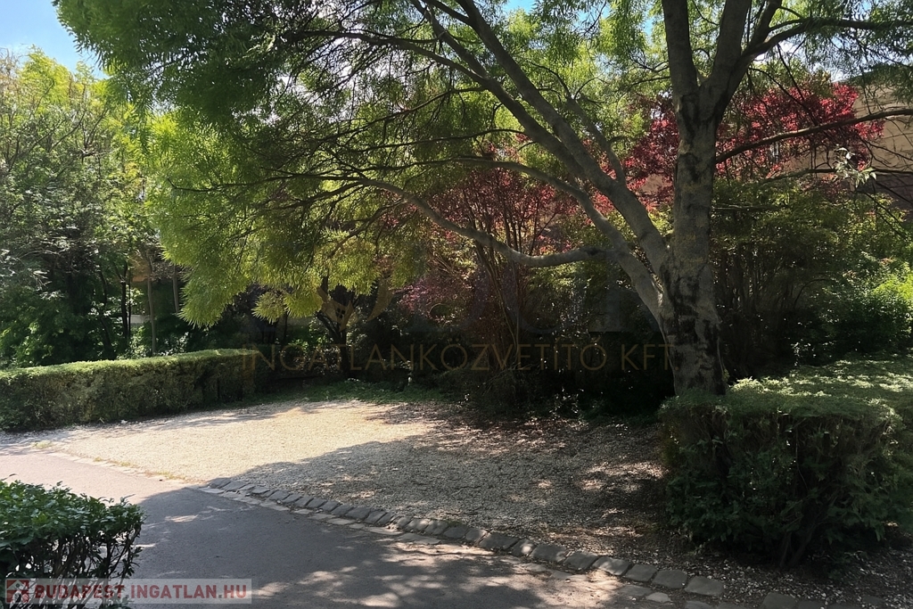 Az ingatlanhoz tartozik egy teljesen leválasztott, privát telekterület (300 m²), amelyet kizárólag a tulajdonosok használhatnak. A telken belül kialakított fedett kocsibeálló két autó számára, az ingatlan előtt pedig további négy autó parkolására van lehetőség.