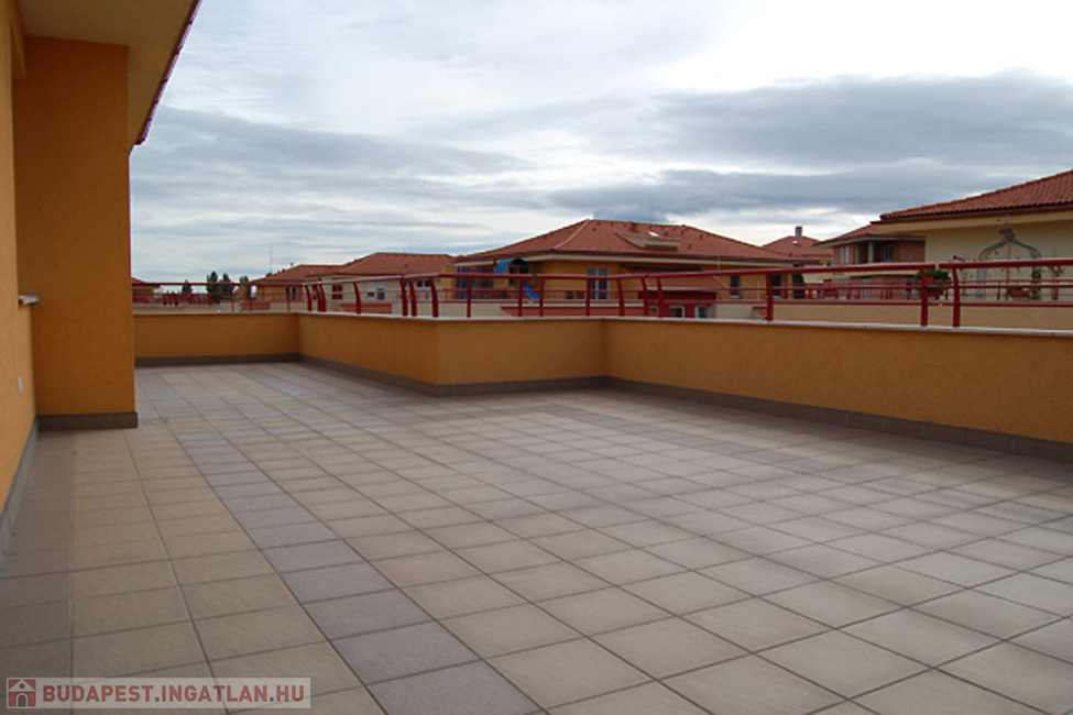 Valódi penthouse (tetőház) körbefutó terasszal a zöld Népligetnél, Budapesten.