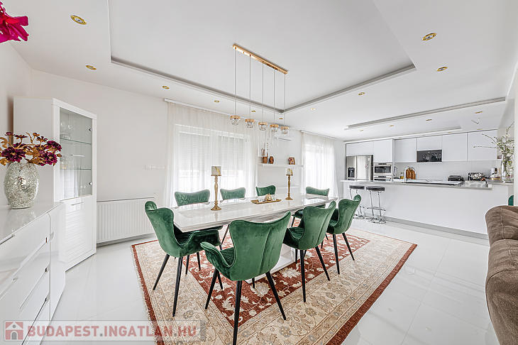Az ingatlan elosztása kiváló, az alsó részen egy hatalmas nappali található, konyhával és étkezővel, a felső szinten pedig két szoba és egy tágas fürdőszoba lett kialakítva.