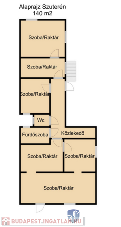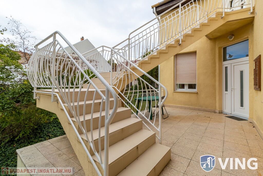- A ház kert felöli teraszáról felvezető lépcsőről nyíló emeleten helyezkedik el.