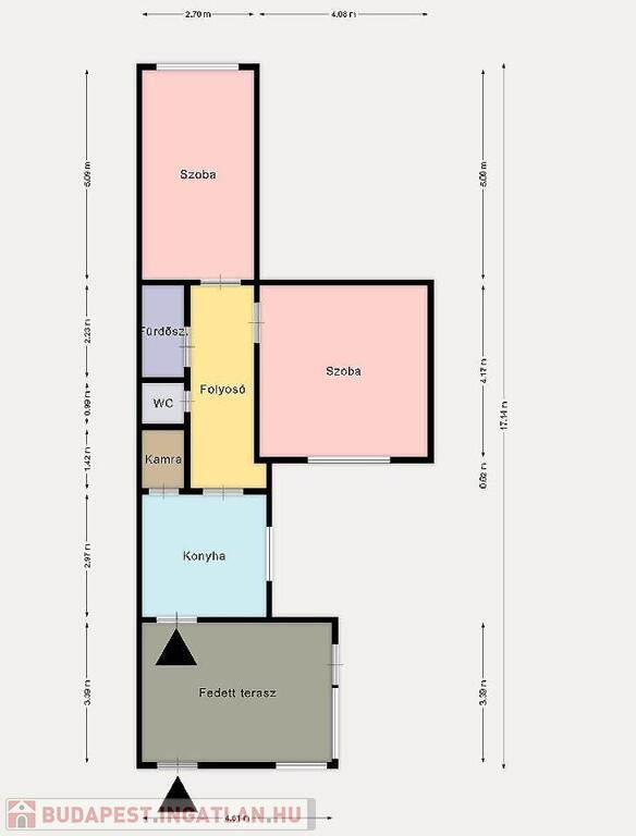 Külön fürdőszoba és WC, valamint 2 db külön nyíló szoba található az ingatlanban.