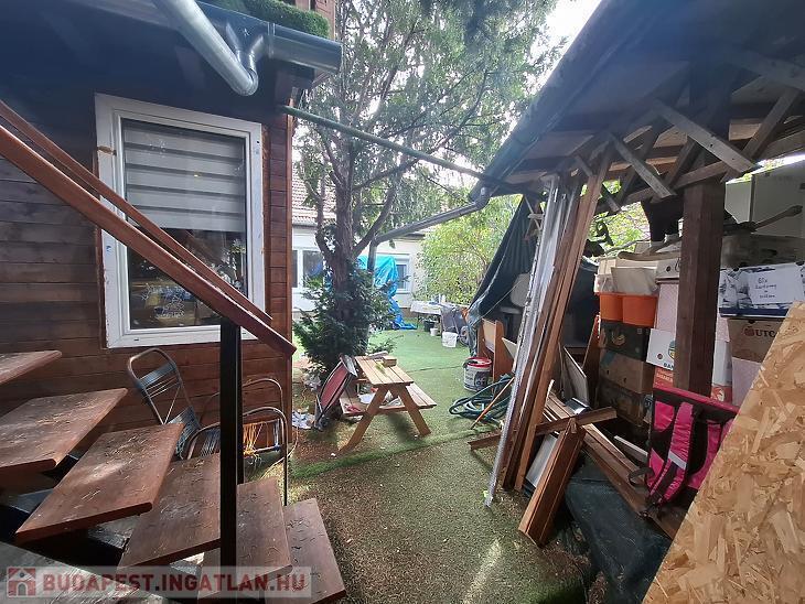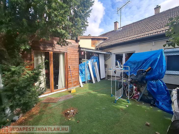 A X. kerület csendes, nyugodt, forgalomtól mentes mellékutcájában, jó közlekedés mellett 2 szobás sorház, saját 60 nm2 -es kerttel.