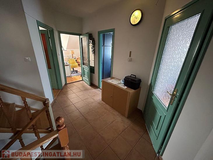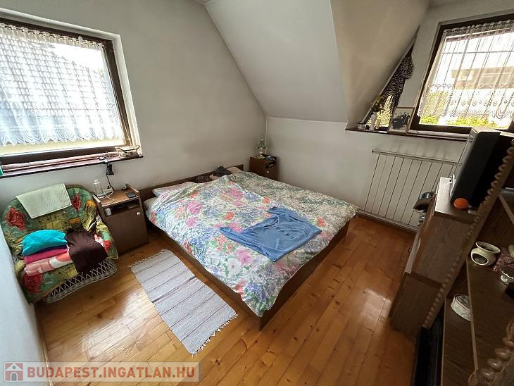 Őrmezőn csendes zsákutcában eladó egy ikerház fél. 1996-ban épült, azóta folyamatosan karbantartott ház, jó állapotú, borovifenyő külső nyílászárókkal. A földszinten inverteres hűtő/fűtő klímával, padlófűtéssel, kandallóval az emeleteken radiátorokkal lehet fűteni melyhez 3 éves cirkó kazán adja a meleget A melegvíz ellátásról külön átfolyós gázbojler áll rendelkezésre. A telek 420 nm. Gondozott kertben szalonna sütő hely lett kialakítva egy szaletlivel. Több autó számára van beállási lehetőség a ház melletti udvari részen, ahova az utcáról elektromos kapun keresztül lehet bejutni.