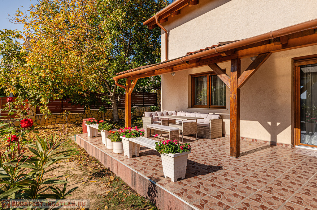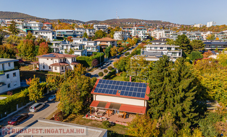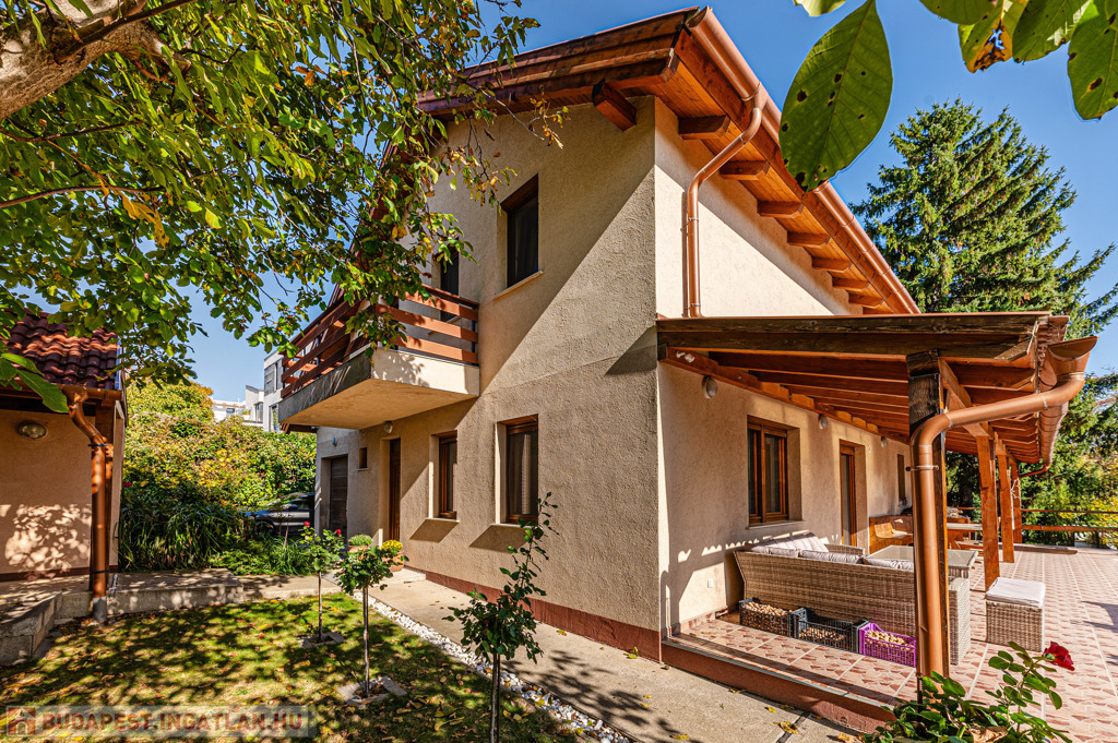 XI. Madárhegy felső részén, CORDIA TERACCE RESIDENCE közelében, csendes, átmenő forgalomtól mentes mellékutcában, teljesen kiépült környéken, elegáns társasházak szomszédságában, 2016-ban, KIEMELKEDŐEN ENERGIATAKARÉKOS technológiával épült, klasszikus stílusú, rengeteg növénnyel és gyümölcsfákkal beültetett, természetközeli hangulatú, 1000 nm-es sík kerttel körülvett, egyedi hangulatú, önálló családi ház, dupla garázzsal eladó.