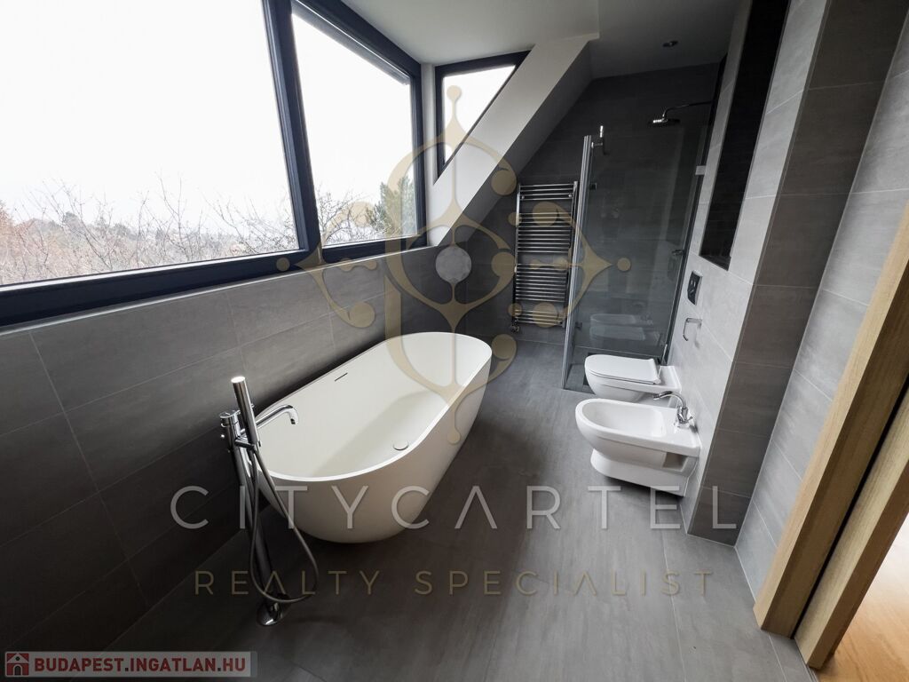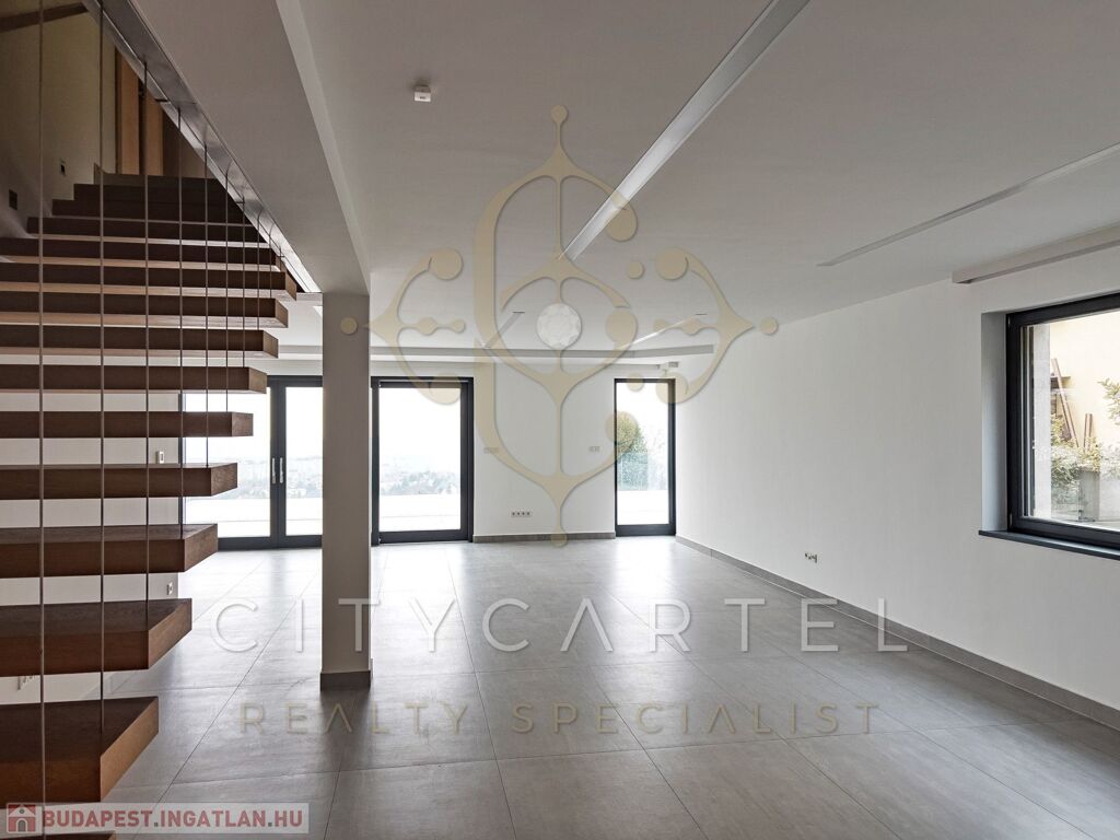 Eladó egy összesen 530 m²-es, két külön bejáratos, akár duplex-kétgenerációs otthonként is használható, 2015-ben teljeskörűen felújított prémium ingatlan, örök panorámával és kivételes műszaki tartalommal.