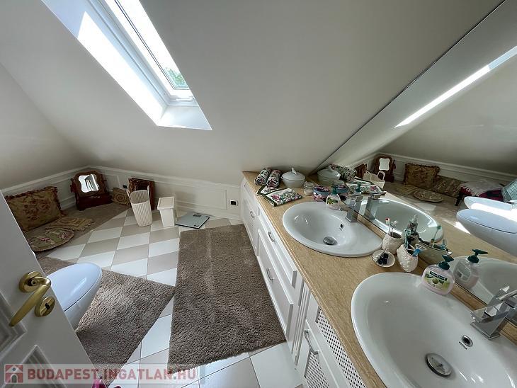 Az 1. emeleten 3 hálószoba lett kialakítva, gardrób, fürdő külön WC-vel, és 2 db nagy méretű, világos, panorámás erkély.
