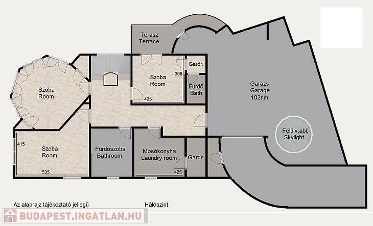 A 4 hálószoba kényelmes méretű és jól szeparált. 3 szoba a hálószinten helyezkedik el, melyekhez 2 fürdőszoba és egy terasz is tartozik.