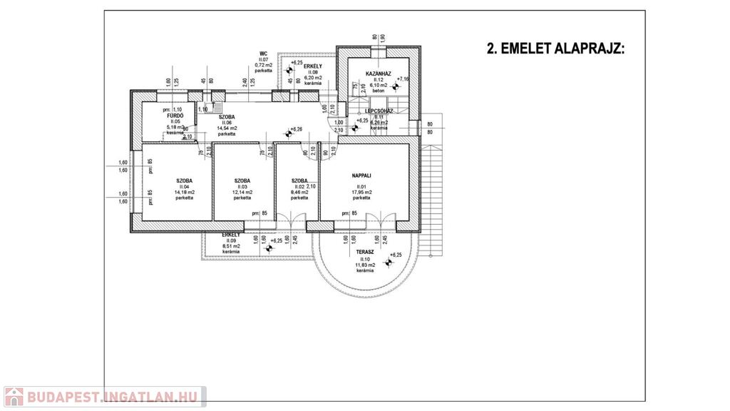Első és második szint együttes területe 188 négyzetméter, belső két szintes, nappali, konyha, emeleti szinten teakonyha, 5 szoba, 2 fürdő, mellékhelyiség, kamra, mosókonyha, kazán helyiség, valamint élhető nagy panorámás teraszok kerültek kialakításra.