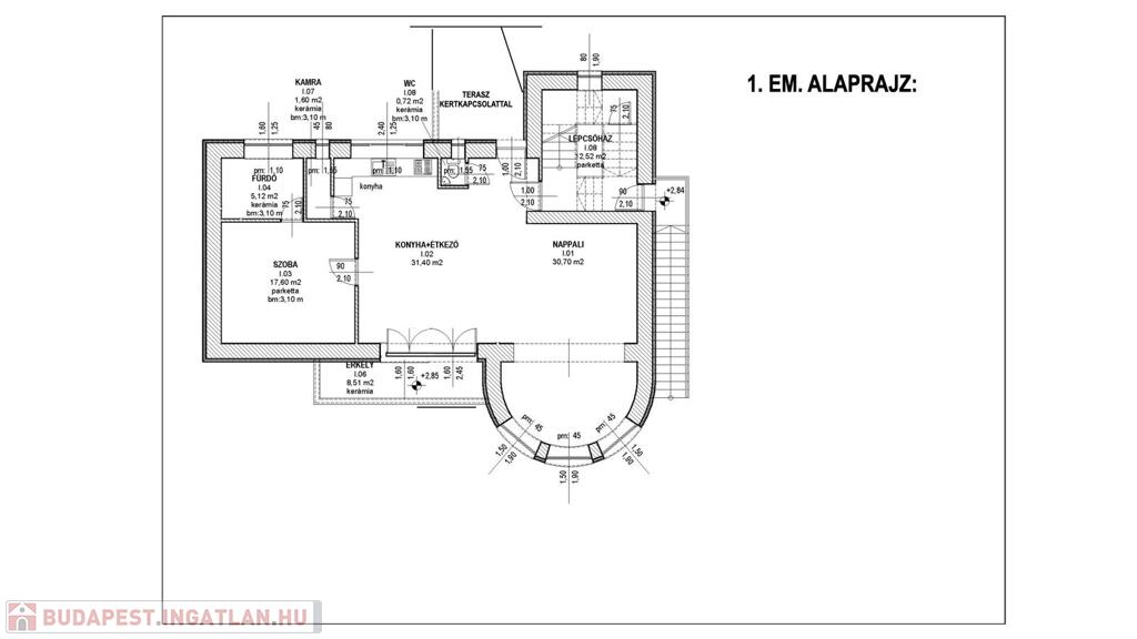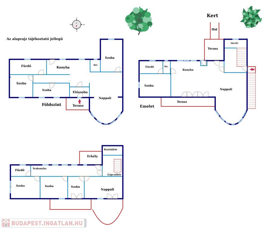 Az ingatlan három hrsz-en van, tehát akár lakásonként is bérbeadható v. eladható.