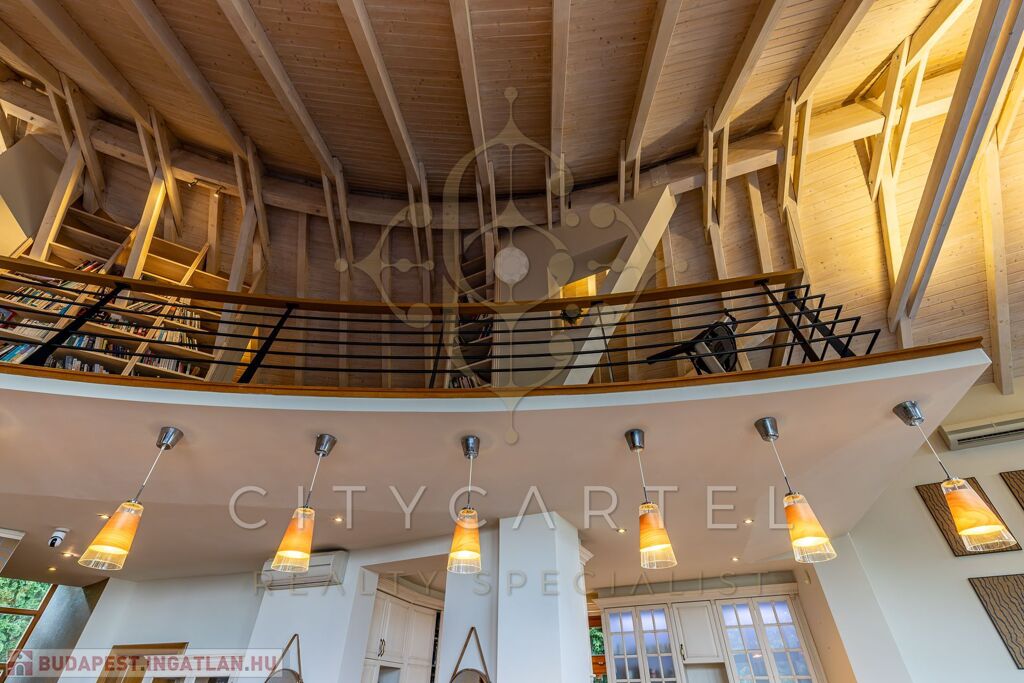 Galériás könyvtár / konditerem / társalgó, 2 hálószoba franciaerkéllyel és gardróbbal, nagyméretű fürdőszoba, tároló
