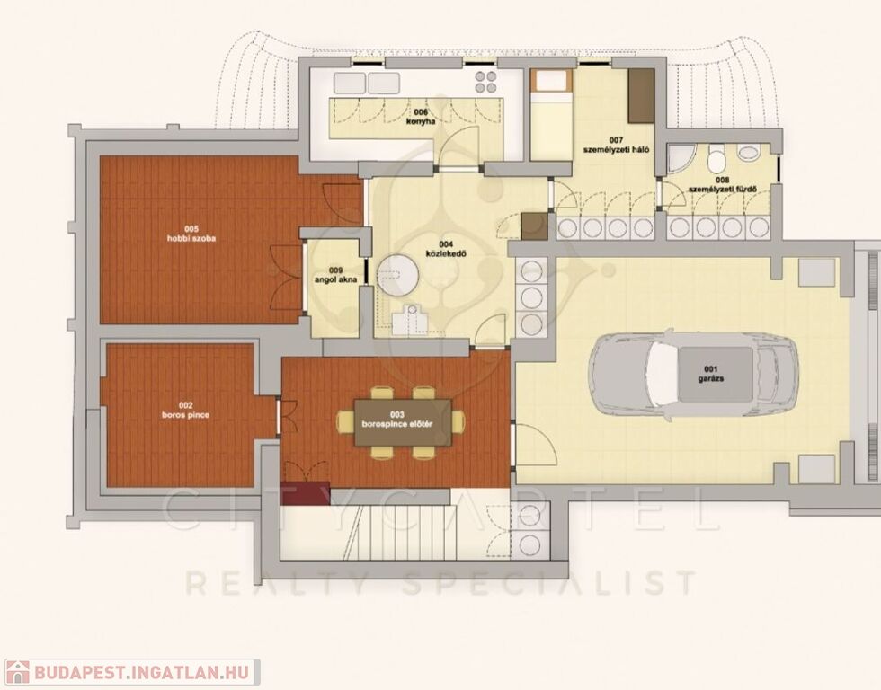 garázs, borospince, hobby szoba (konditerem), vendégszoba, fürdőszoba, háztartási helyiség konyhával