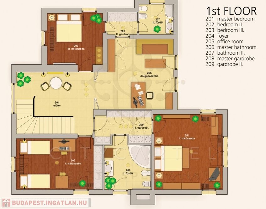 3 hálószoba, 2. nappali, 2 fürdőszoba, 2 gardrób