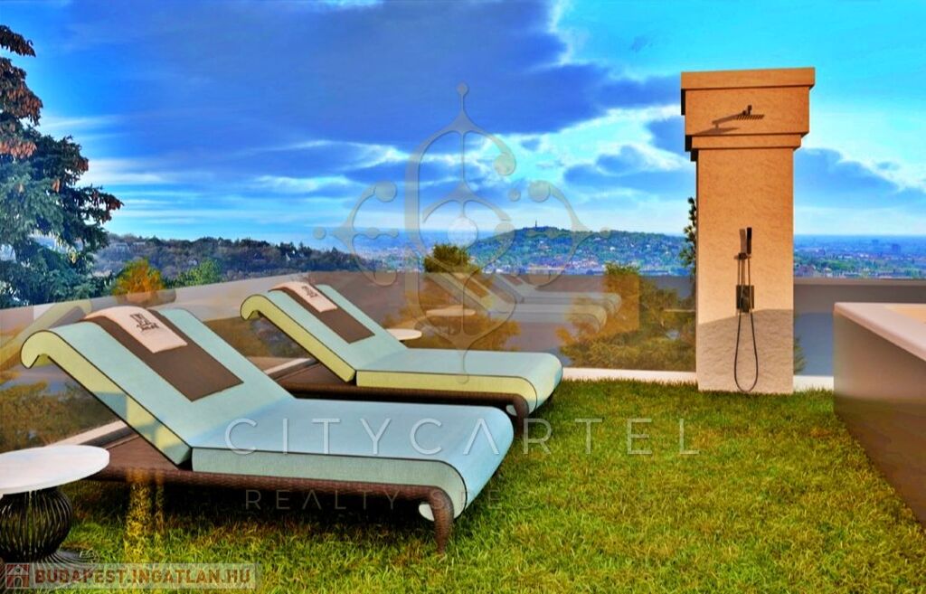Az ingatlan több szintjéről és hatalmas teraszairól lenyűgöző kilátás nyílik Budapestre.