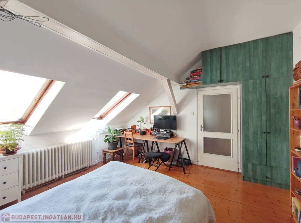 Kivételes lehetőség Angyalföld szívében! Megvételre kínálok Budapesten a XIII. kerületben, frekventált helyen az M3-as út és a Róbert Károly körút ölelésében, parkhoz közel egy 799 nm-es, körbekerített önálló telken elhelyezkedő, kétszintes, 113 nm-es, 3 egész és egy félszobás, tégla építésű, keleti fekvésű, klimatizált átlagos állapotú karbantartott családi házat, 12-nm tárolóval és kerttel.