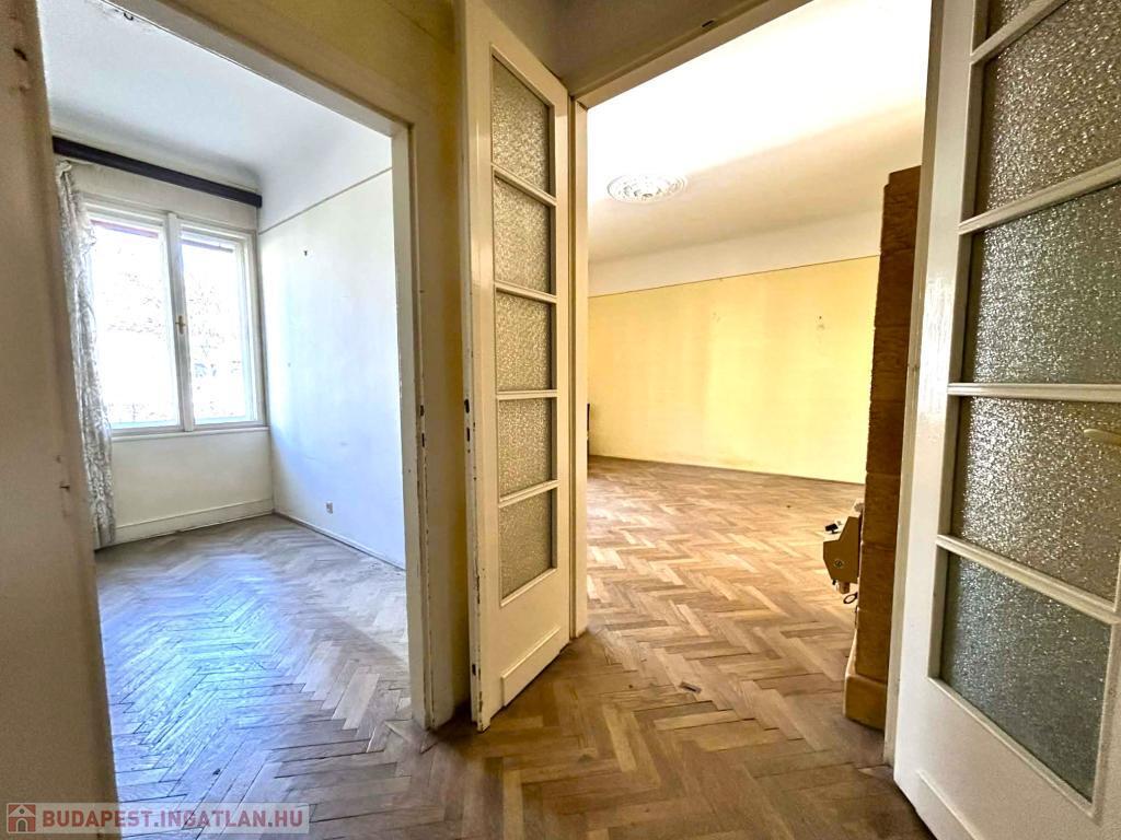 Az ingatlan felújítást igényel, de a falak mozgatásával modern, amerikai konyhás nappali is kialakítható.