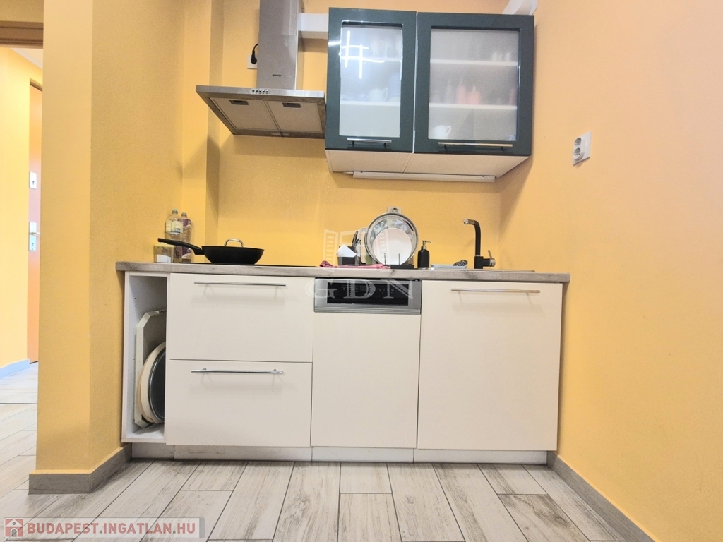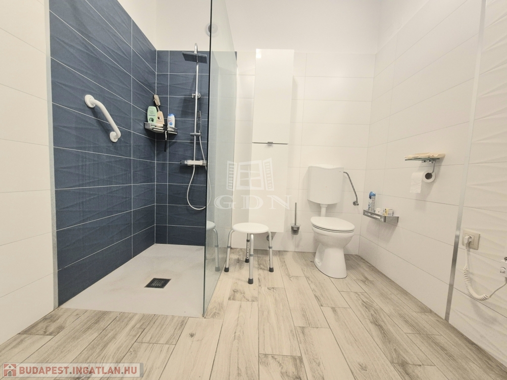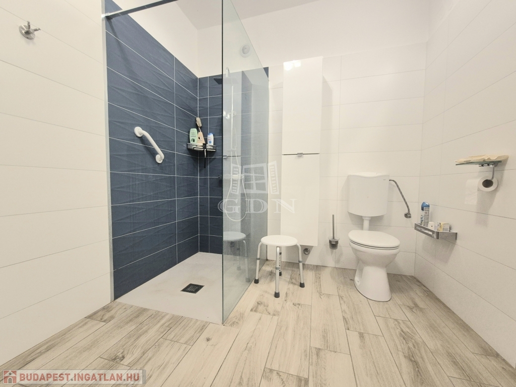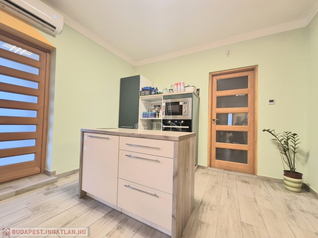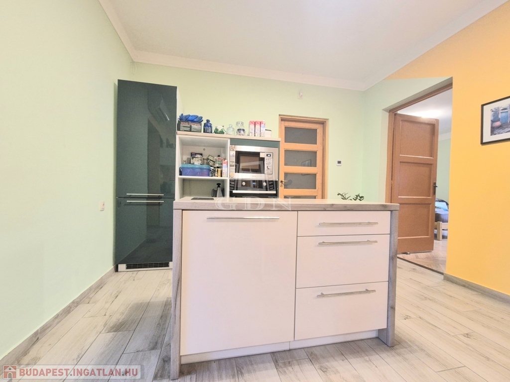 A földszinten lévő, 80 m2-es, két szobás lakás felújított állapotban, korszerűsített gépészettel rendelkezik.