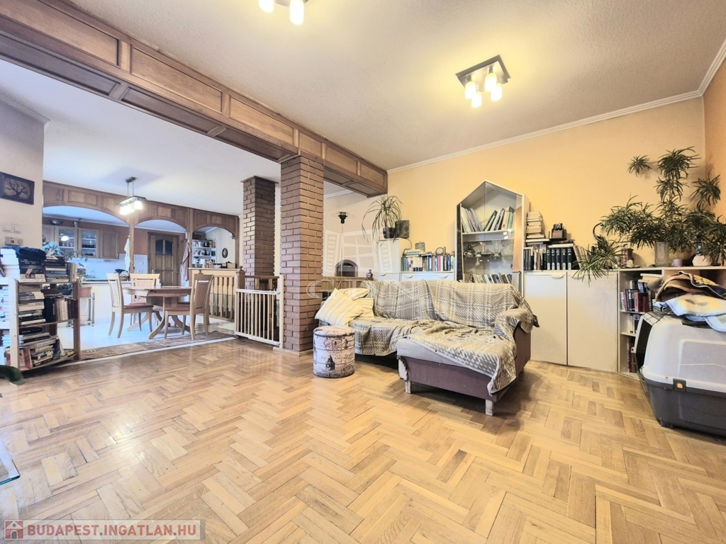 Budapest XIV. kerületének közkedvelt, csendes kertvárosi részén eladó egy 675 m²-es, garázzsal rendelkező telken álló, háromszintes családi ház, amely két külön lakást és szuterén helyiségeket foglal magába.