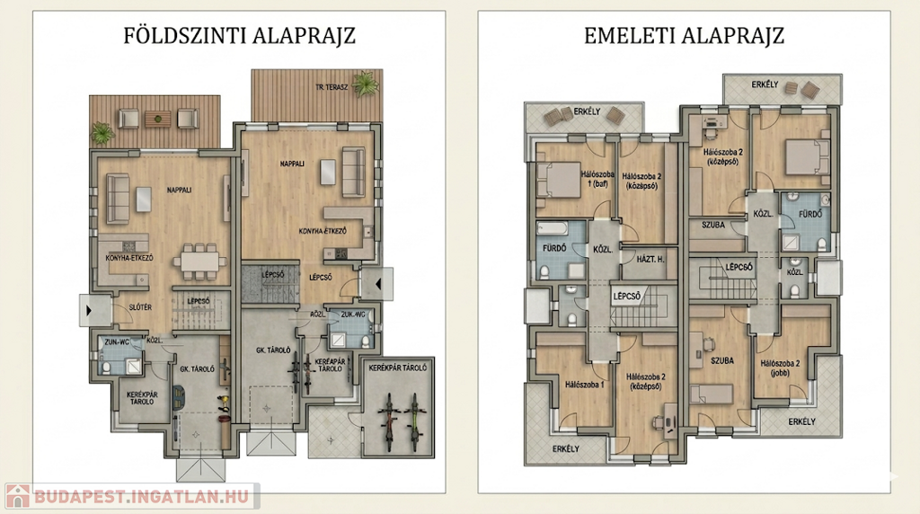 Zugló zöldövezeti, nyugodt utcájában kínálunk megvételre egy kétlakásos, prémium kivitelezésű ikerházat, ahol a modern építészet találkozik a valódi privát élettérrel.