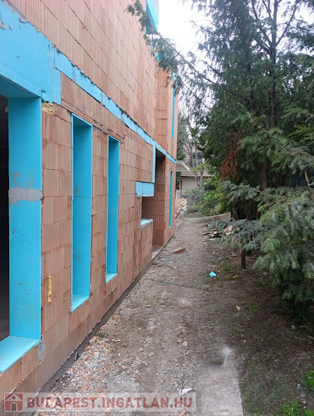Falazat: 30 cm vastag Porotherm tégla, a lakások között 2x25 cm akusztikai hanggátló fal