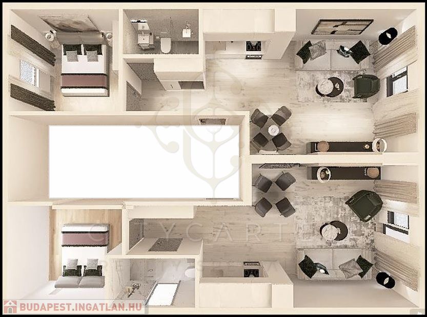 A hirdetésben szereplő képek látványtervek, amelyek segítenek elképzelni az épület végleges állapotát.