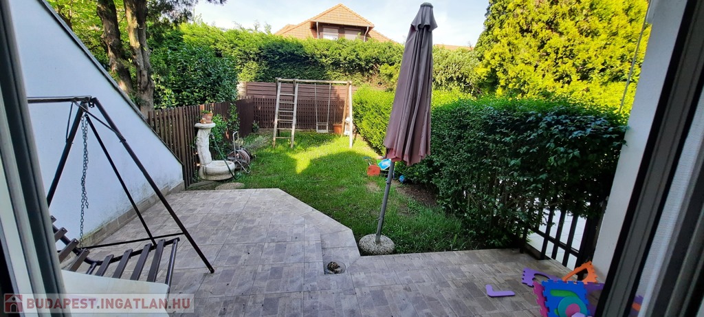 A lakáshoz tartozó kert szépen parkosított, kisgyermekeseknek, idősebbeknek ideális választás lehet. A teraszon intim környezetben pihenhetünk, fogadhatjuk barátainkat, vagy sütögethetünk kedvünkre. Különösebb karbantartásra nincs szükség.